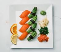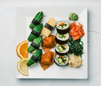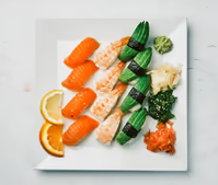 8/10/12 bitar (Vegitariska Rullar + Blandad nigri, (Välj mellan Advokado, Tofu, Sushi omelett)
