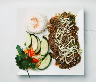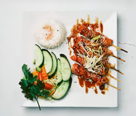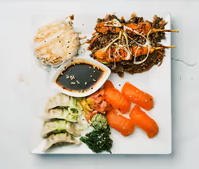 kyckling/Räkor/Vegetarisk eller blanda med ris, sallad och dumplingsås