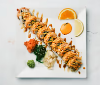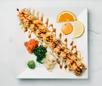 10 bitar ( Lax, avokado,gurka och philadelphiaost. Toppad med chilimajonäs)